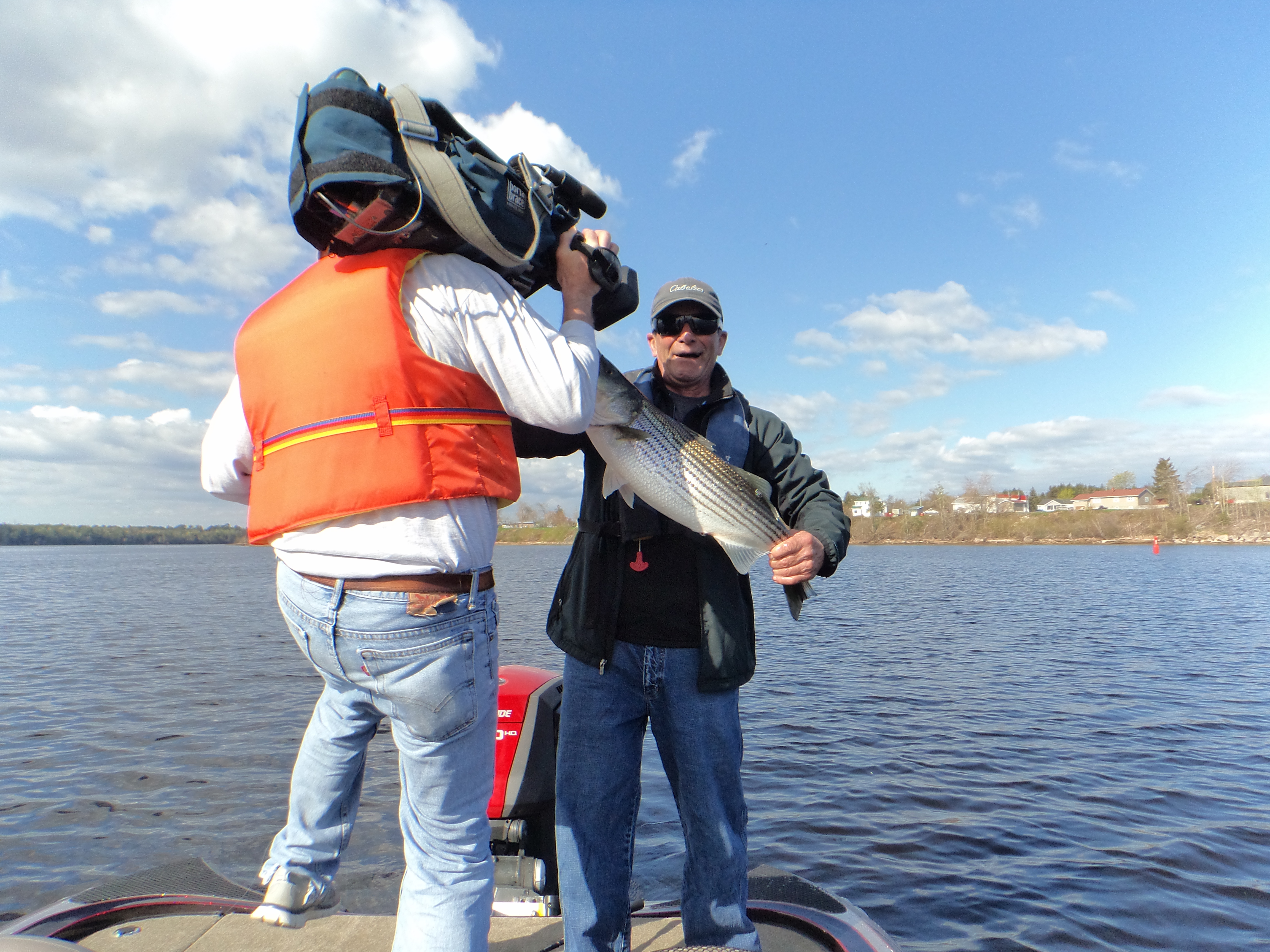 Our first show of the season actually started out last fall even though I only met my guests the morning of the shoot. I donated a fishing trip for the Fredericton Homeless Shelter dinner and auction in November. Kris Mann was also supporting the shelter by attending their dinner and bidding on the items up for auction. That was the beginning and we chatted on the phone to see what he would like to fish for. Striped Bass on the Miramichi was the answer and he wanted to also bring his father in law, Rod.