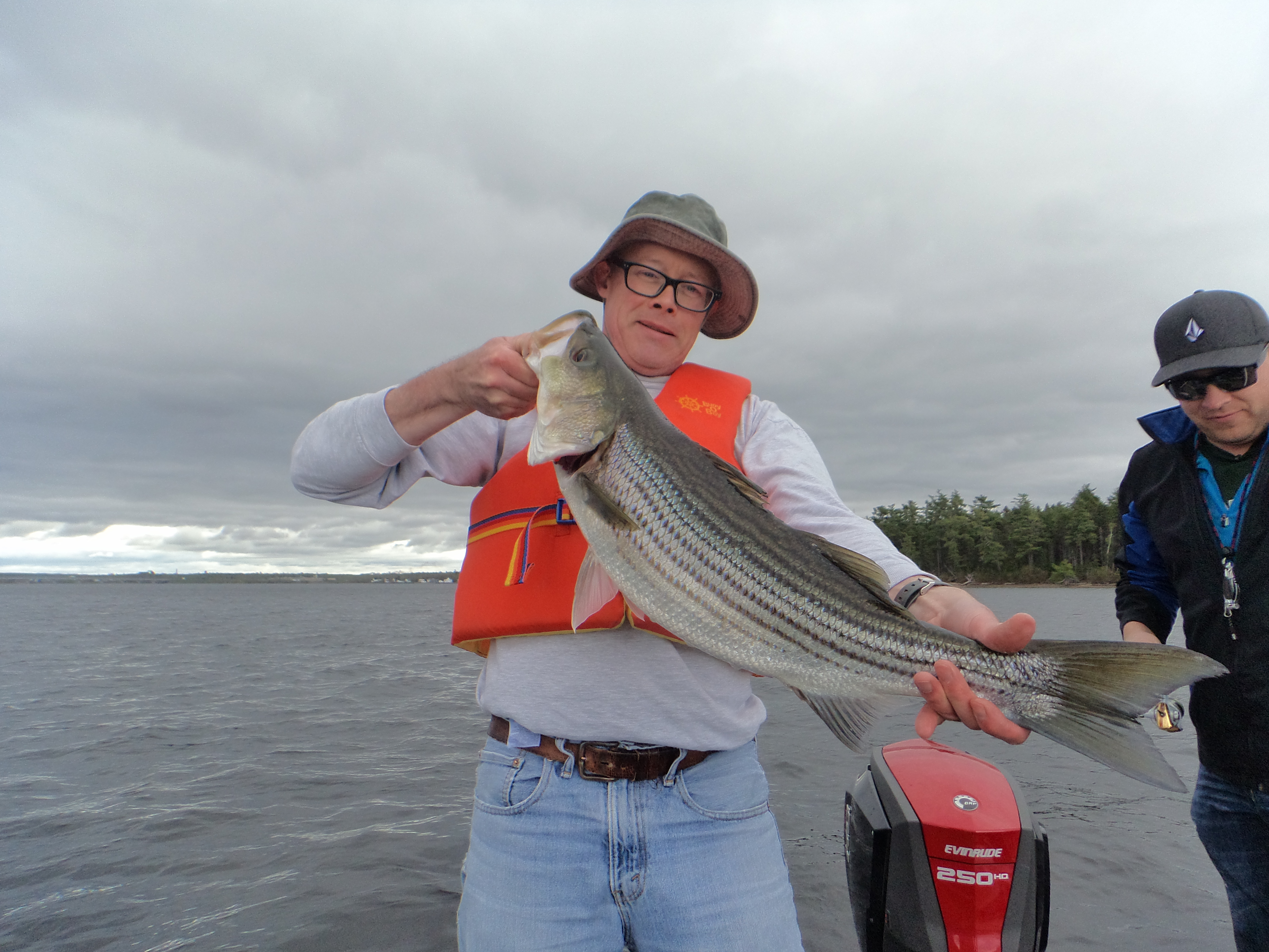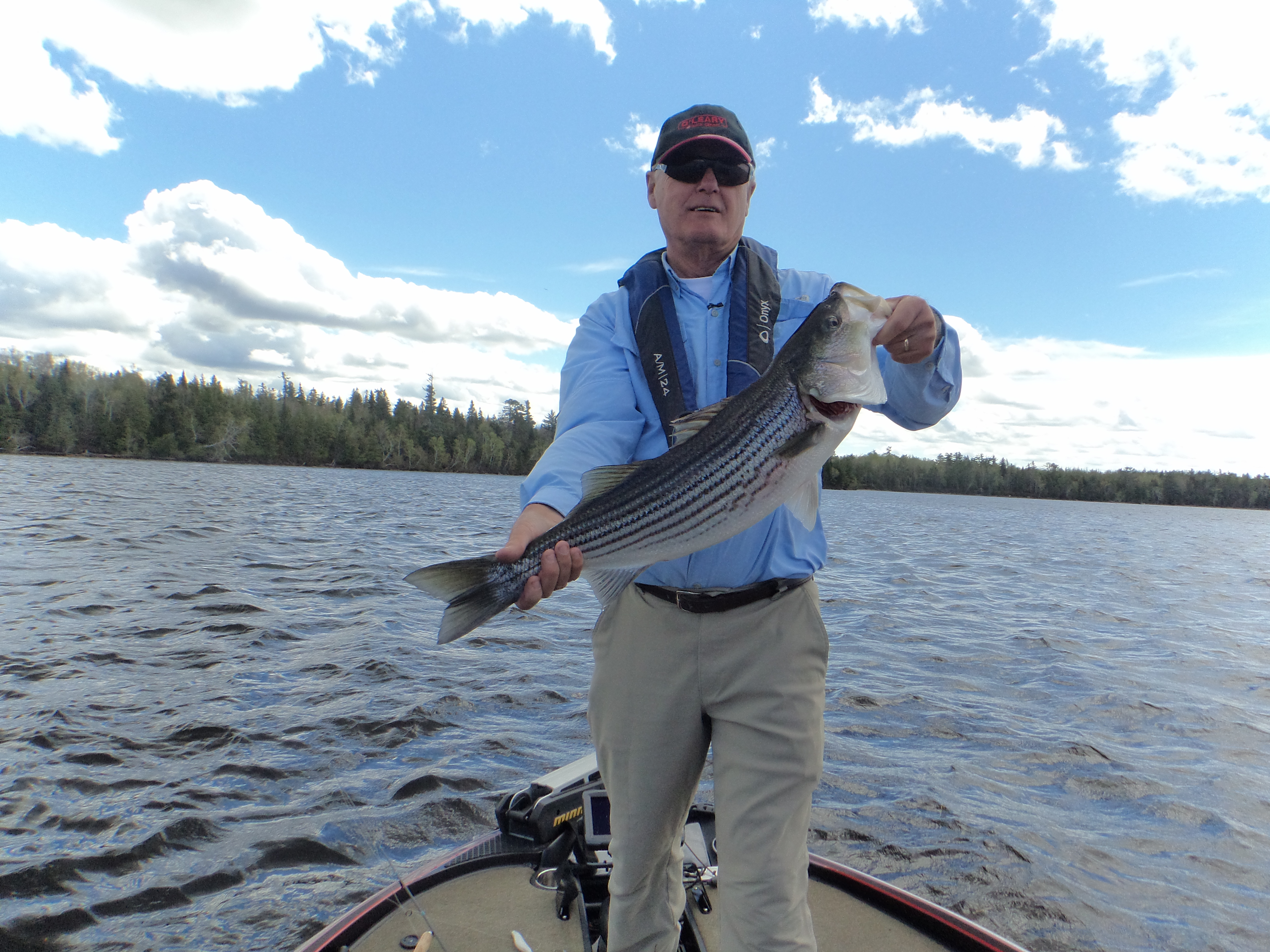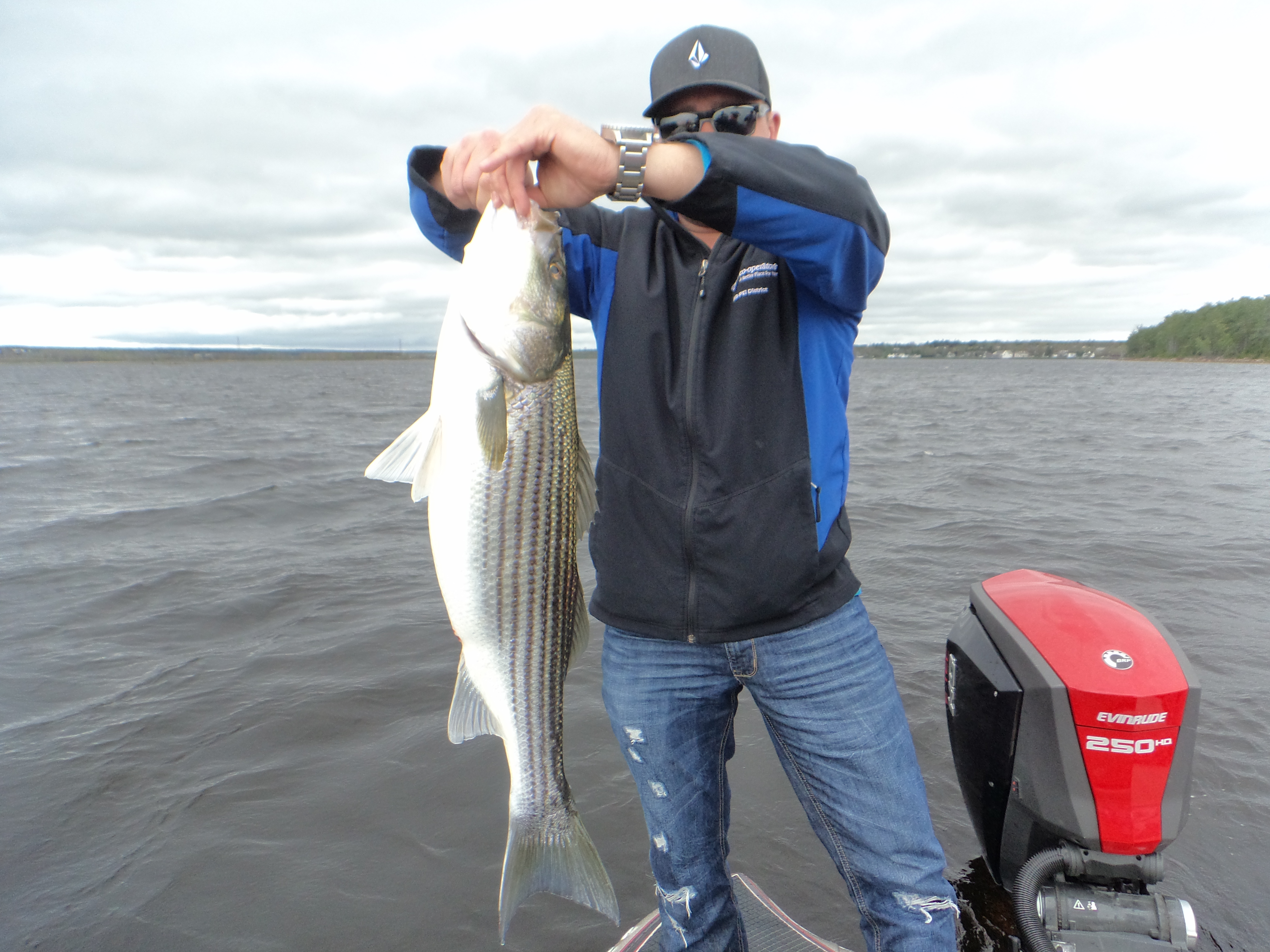 We put the Triton in at the Enclosure ramp on the edge of Miramichi City and idled down river a bit and started fishing the channel edge. We almost immediately started marking fish on the Lowrance and hooked up on some Stripers very quickly. The fish seemed to be moving through very fast and it was hard to stay on the schools as they moved up river so we were constantly on the move looking for them.