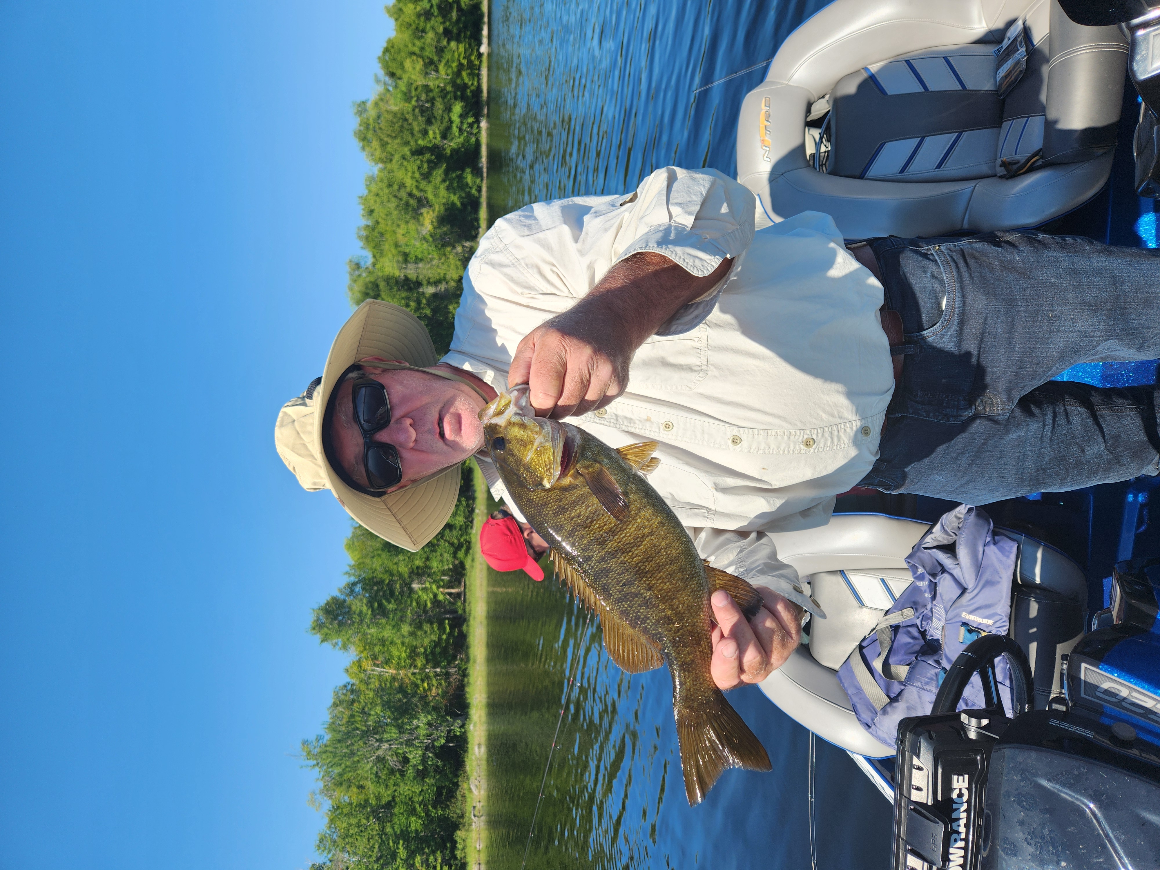 Ron and I hit the lake yesterday with the goal to skip some of the stuff we usually fish and go exploring because we were not finding bigger fish. There is one area we idle through because of rocks and Ron saw some breaking fish off to the side so we stopped. There were no big fish but we caught a ton of 14 inchers before we headed up the lake. Kind of like a warm up. We ended up about 20 minutes away from the ramp and got into a few better fish late afternoon. We had not seen a boat for hours until we ran into a few Maine guides in the afternoon. It is amazing how quiet it is out there when there is no one around for miles. We were pulling off of a long point with the goal of heading back to the ramp when I saw a tree on the AT2. It bottomed out at around 50 ft. I fired a tube jig at it and was into a nice fish almost immediately and as it got neared to the boat I saw she had buddies with four more coming up. It was an interesting few minutes to say the least but we were running late and had to leave it after I saved a waypoint-we will be back to visit it again. The run back was a full out run and I made sure I stuck right on my trail on the Lowrance. The lake is a rocky old boat breaker and you don’t want to make a mistake. Oh, and the clouds of bait we were seeing appear to be young of the year Gaspereux. We threw a lot of stuff at them today but the tube and a dropshot picked up most of the fish. Mine was rigged on an Expride 7′ M, a 2500 Stradic with 15 lb Power Pro and a 10lb Mastiff Flourocarbon leader. See you on the water